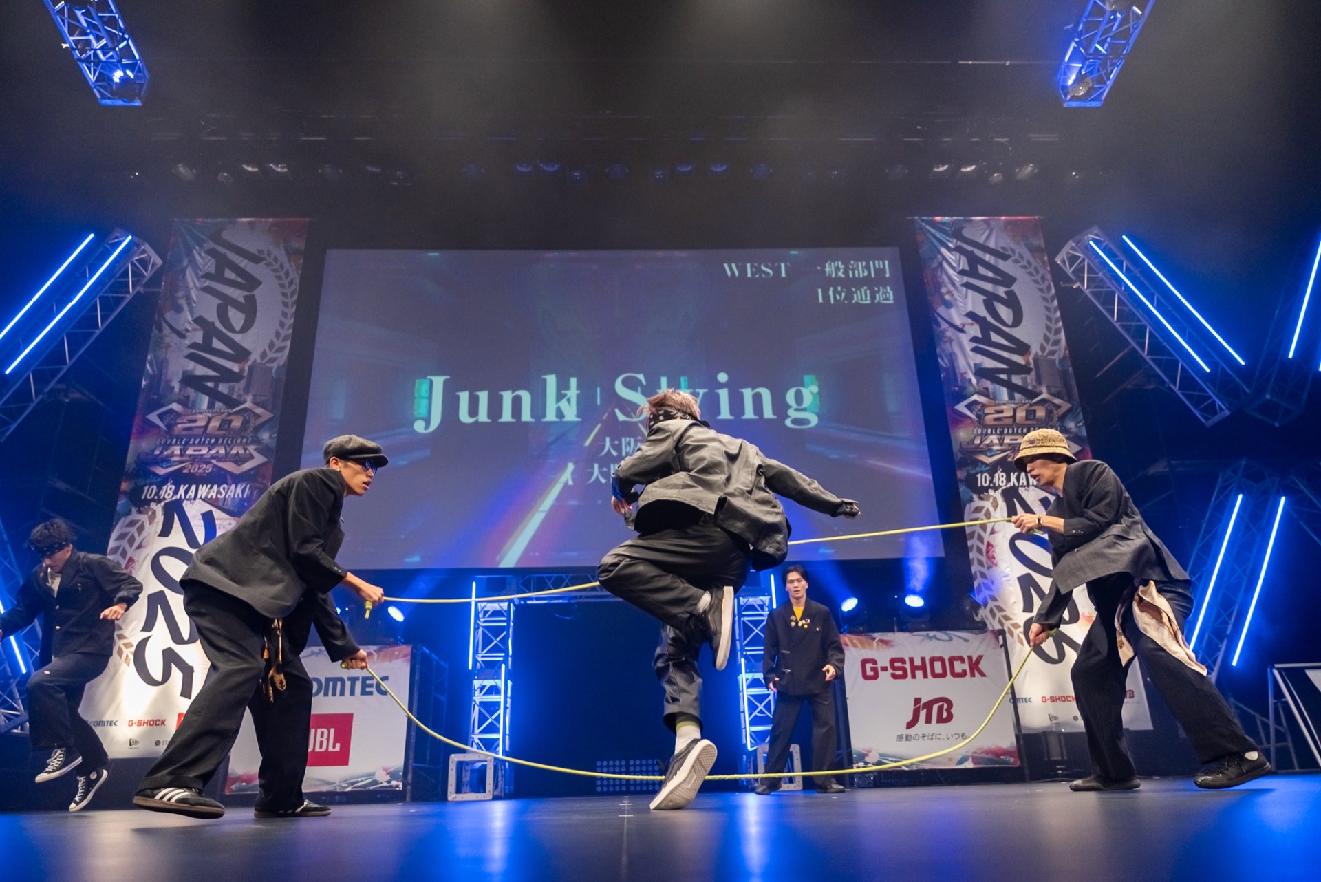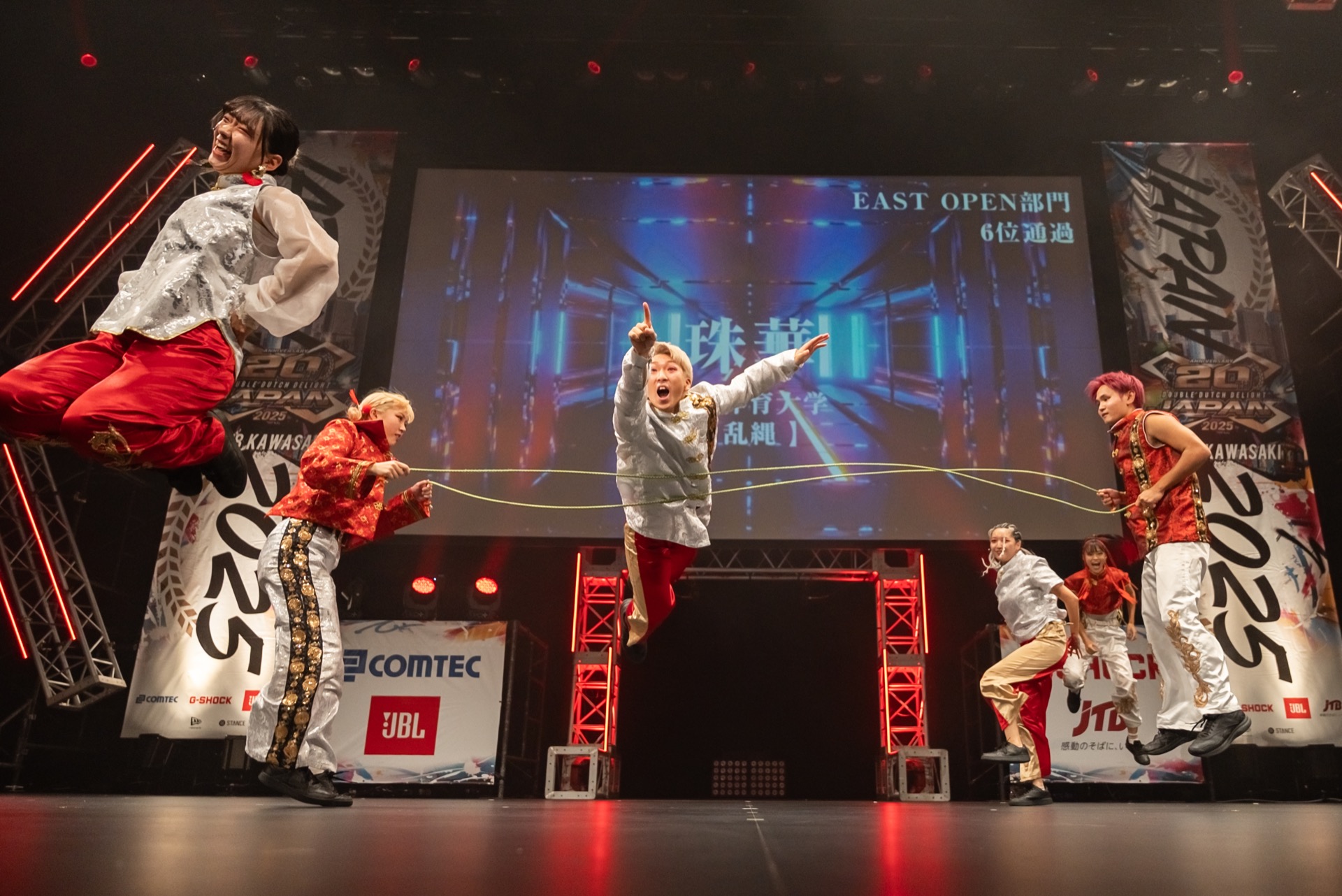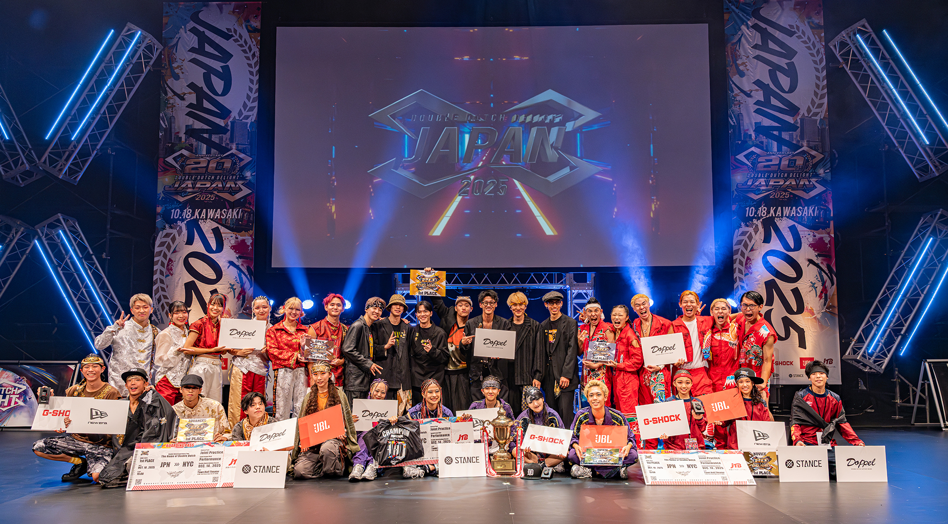 出場された選手の皆様、本当にお疲れ様でした。 20年にわたる大会の歴史の中で「見せ方」の幅が大きく広がっていることを感じました。 今回の審査においては、「個性」や「工夫」がチーム全体のコンセプトや表現の中でどれだけ活かされているかを重視しました。単に目立つ技や構成ではなく、そのチームならではの雰囲気や流れを持っているか、そこに一貫したストーリーが感じられるかを見させていただきました。 ⸻ ◾一般部門 [ NO GUNS, JUST ROPE / HAND STAND ] キャラクターとコンセプトが明確で、最初から最後まで自分たちの世界観を作り上げていて、動きや表情、音の使い方すべてに統一感があるショーでした。 ⸻ ◾NOVICE部門 [ Touch & Jumps ] 1本の縄という表現の中で、さまざまな工夫を取り入れていた点が印象的でした。自分たちらしさを発揮する姿勢、そして“1本の縄でデライトに挑む”という覚悟に心を動かされました。 [ ストロベリーストロングボンバーズ ] 登場から退場まで、一貫したキャラクター性を保ちながらステージを作り切っていた点が素晴らしかったです。見る人に強く印象を残すオリジナリティがありました。 ⸻ ◾ADVANCED部門 [ BUSKU RUTCH ] オープニングからの流れの中で、音楽へのアプローチが非常に豊かでした。音とジャンプの関係をシンプルにすることで、ダブルダッチそのものの魅力がよりクリアに伝わり、視覚的にもわかりやすいパフォーマンスでした。 ⸻ ◾OPEN部門 [ 第一天空部隊 / BuunDelete / LiL-DOPE / Aslan / Fuzzy Bud Hub / Drunk Bat ] どのチームも個性と工夫を凝らし、それぞれの世界観の中で、全力で表現していました。 オリジナリティのあるロープトリックや、身体能力を活かしたスキルなどを取り入れ、見ている人にサプライズを与えていました。 その中でも、第一天空部隊は「声」や「ファニー」、そして“間”の使い方がとても巧みで、観客を引き込みながら展開していく構成が印象的でした。 ⸻ 上位チームと下位チームの差は、「アイデアを形にする力」だと思います。面白い発想をチーム全員で共有し、それをどう構成に落とし込み、本番で見せ切るか、という部分で差が生まれているように感じました。 全体を通して、どのチームにも自分たちにしか出せない色があり、ダブルダッチというカルチャーの多様性と進化を強く感じました。 それぞれの挑戦に敬意を込めて、心から拍手を送ります。 |