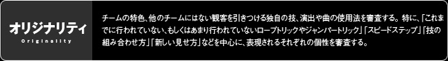 ※上記「得点が同点だった場合の審査方法」は、各大会入賞チームを決定する場合に適応される。